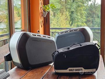 Vendo a metà prezzo dei bauli laterali modello sport, comodi per viaggi, con borsa interna estraibile, compatibili con tutti i modelli di Harley-Davidson Panamerica 1250. Vendo per inutilizzo, bauli in perfette condizioni.
