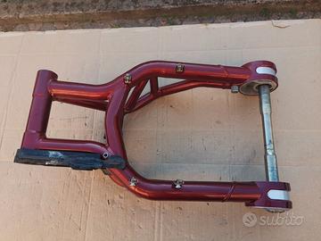 Forcellone posteriore completo di perno ruota, pattino catena ed eccentrici.