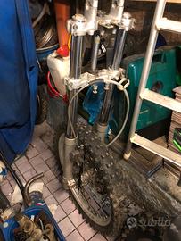 I componenti montavano su beta 50 rr anno 1995: Forcelle appena revisionate 100. Pompa freno anteriore completa 80. Radiatore unico solo destro con griglia 70. Scarico leovinci completo che gira a sinistra per motore derby perfetto stato 100 Per tutti i componenti sopra descritti 300 euro
