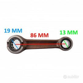 (R.14626) Vendo biella senza spinotto nuova per Benelli 2C bicilindrico 125 cc con interasse fori 86 mm e diametri interni boccole 19 mm e 13 mm , per misure vedere foto