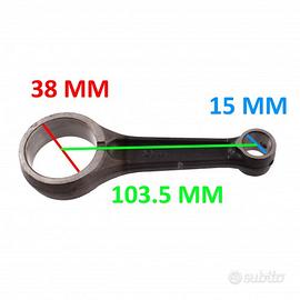 (R.14203) Vendo biella nuda nuova per Sym Husky 125 cc dal 1999 con codice 13201446770H1 con diametro foro asse 38 mm e foro spinotto 15 mm con interasse fori 103,5 mm , per misure e applicazioni vedere foto