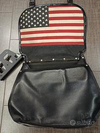 bisaccia moto artigianale personalizzata Harley Davidson in vero cuoio realizzata da Andrea De Marinis, completa di supporto