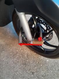 Anticonvenzionale Blocca Ruota per Moto e Scooter costruito dal fabbro con lucchetto rettangolare Fai by Viro, con 2 chiavi. Rivestito con gomma. Dimensioni utili circa 15 x 15 cm