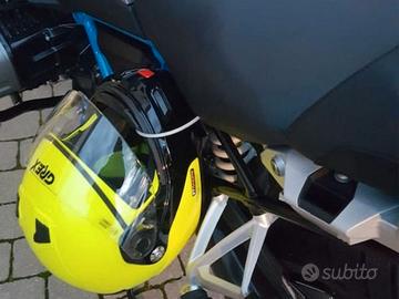 Accessorio in acciaio inox per fissare 2 caschi in sicurezza (pilota + passeggero), senza occupare spazio nel bauletto. Facile da montare, senza modifiche alla moto. Cavo in acciaio rivestito in PVC, con moschettone a vite (senza chiavi o lucchetti). Compatibile con tutte le selle BMW (std, adv, rally). Kit completo pronto all’uso.