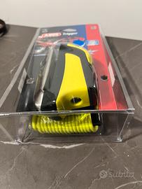 Vendo bloccadisco ABUS trigger serie 300 nuovo, mai utilizzato, sigillato ed ancora nel suo imballo originale e integro. Custodiainclusa per un trasporto facile e sicuro in un comparto dedicato (es. vano sotto sella) - Due chiavi incluse Il blocca Disco ha le seguenti caratteristiche: - Perno di chiusura in acciaio da 9,5 mm - Il perno, ilcorpo di chiusura e tutti gli elementi sono realizzati in acciaio cementatospeciale - Bloccadisco con protezione contro gli attacchi con destrezza (ad es. il picking) - Facile utilizzo con chiusura a pressione per serraggio - Memory Cable incluso, per evitare di partire con il bloccadisco inserito -