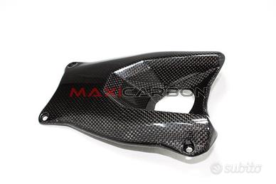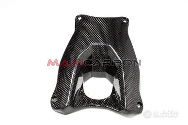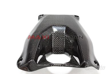 La finitura del carbonio è lucida (disponibile su richiesta anche con finitura opaca), e la trama utilizzata è la stessa di Ducati.