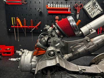 VENDO o VALUTO SMEMBRO tutto in PERFETTE condizioni e con circa 70h di utilizzo blocco minarelli orizzontale tpr 70 lc -tpr 2 70 a liquido testa scomponibile -albero top tpr spalle piene -marmitta elgica calcolata per semitrofeo -selettra 14.5 gradi, scintilla fin dai 350 rpm che fa accendere facilmente il motore e curva ampia (istruzioni e specifiche in privato) ASPIRAZIONE -pacco lamellare vl 14 malossi -collettore rialzato stage6 per carburatori 24-28 -carburatore vhst 24 + spilli, getti, polverizzatore -filtro malossi e13 inclinato 25 gradi TRASMISSIONE -viteria completa -molle di contrasto: rossa malossi, media stage, originale, 34kg polini -rulli: 4g c4, 5g stage6 15x12 -mollette frizione: kit carenzi + molle blu polini -correttori e ventolino già venduti -variatore stage6 pro rulli piccoli 12x15 -frizione stage6 mk2 regolabile 107mm -frizione malossi delta clutch regolabile 107mm -frizione originale -campana motoforce ventilata 107mm -campana malossi wing bell 107 mm -campana originale CICLISTICA -adattatore spostapinza stage6 per minarelli pinze 4 pistoncini 82mm -pinza RPM 4 pistoncini 82mm argento COME ALTRA CICLISTICA (in più): -ammortizzatore yss a gas con bombola 290mm -coppia sinistra e destra pompe adelin 14x18 -disco 220mm RPM tre fori interasse 7cm colore blu (va bene per f12 e altri) -altra pinza RPM 4 pistoncini 82mm argento -spostapinza per pinza 4 pistoncini -telaietto easyboost per montarlo su booster (altro sul profilo) Pronto a essere montato ✅ Posso spedire 📦 Per ulteriore info e foto scrivetemi 💬