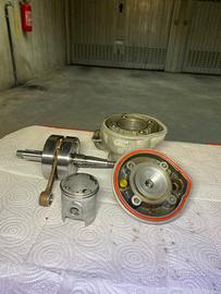 Vendo blocco motore am6 che monta i seguenti pezzi: Albero tpr corsa 39 spalle piene Gabbia rulli tpr Gt completo che comprende Cilindro in alluminio a 5 travasi e uno scarico a traversino Pistone bifascia in alluminio Testa ad incasso Carter non lavorati 2 serie Cambio completo 2 serie Contralbero incluso e messo in fase Frizione messa in fase Dischi della too performance e molle a carico maggiorato Viti blocco nuove le 13 per accoppiare i carter sono brunite( nere) Dadi testa cilindro nuovi Viti frizione nuove inox COPPIE DI SERRAGGIO: Viti centrali carter: 11nm Dadi testa: 14nm Viti frizione: 7nm Dado lato frizione sullalbero: 40nm Dado contralbero:35nm Dado frizione:35nm Dado scolo olio:15nm NON DO GARANZIE SUL MOTORE, disponibile per qualsiasi tipo di visione, anche da un meccanico nessun problema. Posso spedire No perditempo ACCETTO OFFERTE