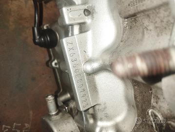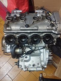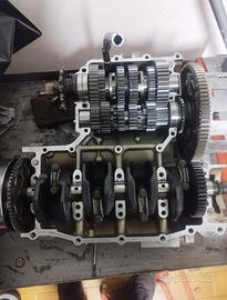 Blocco Motore Kawasaki Zx6r 2005. LEGGERE BENE Al motore sono stati svolti i seguenti lavori: Pulizia valvole,sedi valvole sostituzione paraoli valvole e controllo gioco valvole. Sostituzione guarnizione punterie. Sostituzione forchetta albero primario. Quelle del secondario sono in ottime condizioni. Sostituzione tamburo selettore. (Desmodromico) Controllo visivo degli ingranaggi del cambio. Sono tutti in ottime condizioni, la terza del secondario presenta lieve usura rispetto agli altri. Sono stati applicati rasamenti cementati x ridurre gioco assiale ingranaggi albero secondario. Albero motore e bronzine non presentano segni di usura. Vendo come da foto senza frizione e coperchio frizione. Lo vendo con formula visto e piaciuto, o come parti di ricambio o non funzionante in quanto non ho avuto modo di testarlo. Oppure da ricontrollare prima di montarlo.