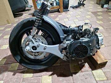 corpo farfallato, scatola filtro aria, cerchio completo di disco e sospensioni posteriori.