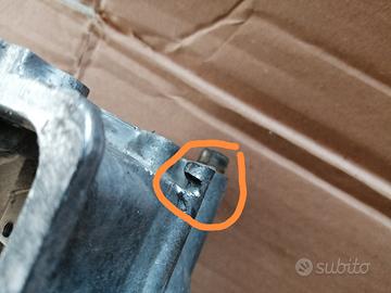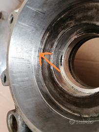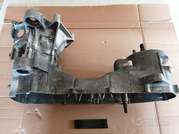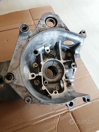 Carter motore semicarter motore minarelli orizzontale freno a tamburo usato semicarter con i due filetti fissaggio marmitta non perfetti carter con foro attacco cavalletto centrale rovinato sigla 5AD completo di rapporti non so che rapporti sono montati da cambiare guarnizione carter rapporti e mettere olio Condizioni come da foto