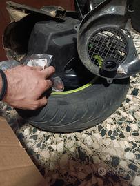 Vendo blocco motore 125 di un Gilera / piaggio typhoon 125cc ad aria, gruppo termico originale gilardoni, carburatore 24 pwk replica, marmitta originale con collettore sip (da modificare per fittare bene per quello è montata al contrario sul motore, era giusto per tentare di avviarlo), ruota typhoon 10" per 125cc gommata ancora bene (tamburo 110mm, perché quella del typhoon 50cc non va bene su questo blocco in quanto è per tamburo da 100mm), completo di tutto praticamente, anche di telaietto del 125cc, centralina, bobina, delle coperture cilindro e ventolino che son introvabili ormai, etc. Vendo tutto assieme a 350€, ha alcune cose da sistemare che vado a elencare:
