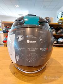 Visibilità: Equipaggiato con una visiera esterna lunga, ideale per una protezione totale dal vento, e un visierino parasole integrato a scomparsa per il massimo comfort visivo