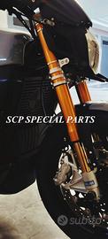- FORCELLE OHLINS allestite su misura in base al progetto, modello R&T con stelo da 43mm e fodero da 56mm (disponibili su richiesta anche OHLINS NIX SUPERBIKE oppure OHLINS TRADIZIONALI NON ROVESCIATE)