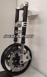 Progettiamo e Realizziamo avantreni speciali con forcelle OHLINS, oppure con forcelle di altre marche fornite dal cliete, su misura per: cafe racer, scrambler, streetfighter, superbike, prototipi, show bike, maxi enduro, off road, custom.