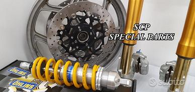 REALIZZIAMO KIT SOSPENSIONI OHLINS E IMPIANTO FRENANTE RADIALE BREMBO SU MISURA PER: BMW K 100 BMW K 75 BMW K 65 BMW K 45 BMW R 100 BMW R 90 BMW R 80 BMW R 70 BMW R 60 et FORCELLE OHLINS, AMMORTIZZATORE OHLINS, PIASTRE DI STERZO RICAVATE DA PIENO SU MISURA, DISCHI BREMBO MAGGIORATI DA 320MM, PINZE BREMBO RADIALI, PARAFANGO CARBONIO. PROTOTIPIAMO E REALIZZIAMO AVANTRENI SPECIALI PER QUALSIASI MOTO. OGNI AVANTRENO E' REALIZZATO SPECIFICO SU MISURA. SICUREZZA, PERFORMANCE, ESCLUSIVITA' AL TOP!!! LA FINALITA' DI TALI PROGETTI E' RENDERE UNICA LA VOSTRA MOTO. IL KIT E' PLUG AND PLAY! SI MONTA SENZA NESSUNA MODIFICA! ANCHE CON CERCHIO ORIGINALE BMW. Kit costituito da: FORCELLE OHLINS R&T 43 con stelo da 43 mm e fodero da 56mm, forcelle ALLESTITE SPECIFICATAMENTE PER BMW. Le forcelle sono corredate da piedini radiali e pinze BREMBO radiali con dischi brembo da 320mm. Piastre di sterzo speciali ricavate dal pieno e sovradimensionate con piastra inferiore da 80 mm a 3 punti di chiusura e cave di alleggerimento laterali passante. Piastra di sterzo superiore con riser ( o kit manubri sportivi ricavati dal pieno). Staffe parafango ricavate dal pieno con parafango carbonio e kit perno ruota ricavato dal pieno. Per il montaggio si utilizzano boccole e cuscinetti originali. Tutte le parti ricavate dal pieno possono essere anodizzate di qualsiasi colore. Possiamo progettare e realizzare qualsiasi modifica su richiesta. Sulle piastre possiamo replicare attacchi e supporti originali per telaietto, quadro strumenti, blocco accensione, blocca sterzo, ammortizzatore di sterzo etc oppure possiamo farne di nuovi su richiesta come in questo caso in cui è stato intallato uno strumento digitale affogato dentro la piastra. Possiamo fornire come optional: cerchi a raggi su misura SIA DA 17 CHE DA 18 POLLICI.