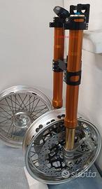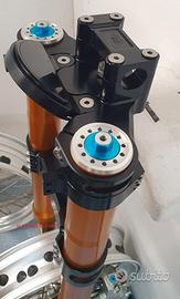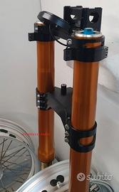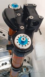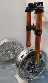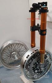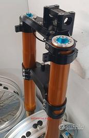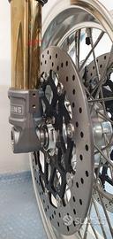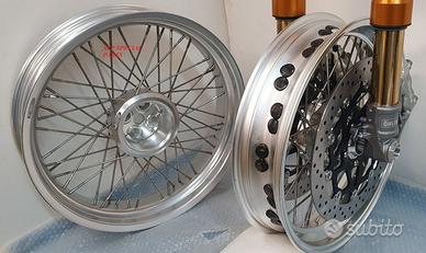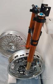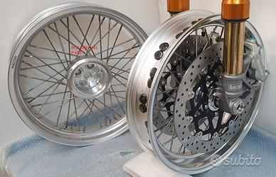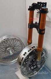 Progettiamo e Realizziamo allestimenti moto su misura con avantreni dotati di forcelle ohlins e freni brembo, monoammortizzatori ohlins, cerchi a raggi, per: cafe racer, scrambler, custom, streetfighter, superbike, prototipi, show bike, maxi enduro, off road, maxi scooter, brat. ESCLUSIVITA', PERFORMANCE, SICUREZZA ED ESTETICA AL TOP! PRESENTIAMO ALLESTIMENTO SU MISURA PER BMW SERIE R E SERIE K ( su richiesta anche per qualsiasi altro modello), costituito da: - FORCELLE OHLINS a stelo rovesciato allestite su misura in base al progetto, COMPLETAMENTE REGOLABILI, disponibili nel modello NIX con stelo da 48mm e fodero da 58mm, oppure nel modello OHLINS NIX SUPERBIKE con stelo da 43mm e fodero da 54mm a 58mm. - PIEDINI FORCELLE RADIALI, su richiesta anche ricavati cnc - KIT PIASTRE DI STERZO RICAVATE DAL PIENO SU MISURA - RISER MANUBRIO OPPURE COPPIA SEMIMANUBRI RICAVATI DAL PIENO - POMPA FRENO BREMBO (optional) - PINZE BREMBO RADIALI (vari mod. disp.) - DISCHI BREMBO MAGGIORATI da 320mm (vari mod. disp.) - STAFFE FARO, STAFFA CRUSCOTTO E STAFFE PARAFANGO RICAVATE DAL PIENO - FLANGE MOZZO PORTA DISCO RICAVATE DAL PIENO (per cerchio originale) - PARAFANGO CARBONIO - COPPIA CERCHI A RAGGI FLUOFORMATI CON MOZZI CNC PROTOTIPATI SU MISURA (OPTIONAL) - AMMORTIZZATORI / AMMORTIZZATORE POSTERIORE OHLINS PRESSURIZZATI PROTOTIPATI SU MISURA (OPTIONAL) IL KIT MONTA PLUG AND PLAY QUINDI SENZA MODIFICHE ANCHE CON IL CERCHIO ORIGINALE BMW. Tutte le parti ricavate dal pieno, i foderi forcelle e anche i cerchi possono essere anodizzate di qualsiasi colore su richiesta. Piastre di sterzo sovradimensionate con piastra inferiore da 80 mm a 6 punti di chiusura, su richiesta con alleggerimenti passanti laterali. Piastra di sterzo superiore completa di riser oppure semimanubri. Possiamo progettare e realizzare qualsiasi modifica su richiesta.