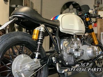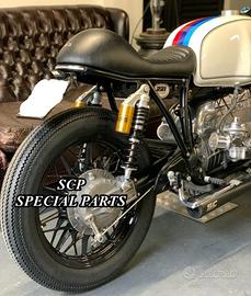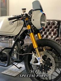 PRESENTIAMO AVANTRENO COMPLETO SPECIFICO PER BMW R 100 CS ( DISPONIBILE ANCHE PER R 90 R 80 R 75 R 60 K100 K 75 E PER QUALSIASI ALTRA MOTO), CON FORCELLE OHLINS ALLESTITE SU MISURA, PIASTRE DI STERZO RICAVATE DAL PIENO SU MISURA, SEMIMANUBRI RICAVATI DAL PIENO, DISCHI BREMBO MAGGIORATI DA 320MM E PINZE BREMBO RADIALI SU CERCHIO ORIGINALE BMW.