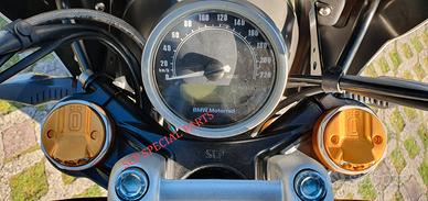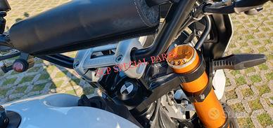 Progettiamo e Realizziamo allestimenti moto su misura completi di avantreni dotati di forcelle ohlins, impianti frenanti brembo radiali, monoammortizzatori ohlins, cerchi a raggi, cerchi forgiati, scarichi termignoni e akrapovic per: scrambler, streetfighter, superbike, cafe racer, custom, prototipi, show bike, maxi enduro, off road, maxi scooter, brat.ESCLUSIVITA', PERFORMANCE, SICUREZZA ED ESTETICA AL TOP!PRESENTIAMO IN ESCLUSIVA MONDIALE AVANTRENO COMPLETO SU MISURA PER BMW R NINE T SCRAMBLER E BMW R NINE T URBAN GS CON FORCELLE OHLINS PRESSURIZZATE ( su richiesta anche per qualsiasi altro modello).IL KIT MONTA PLUG AND PLAY SENZA MODIFICHEE' STATO SVILUPPATO PER PERMETTERE DI RIALZARE LA MOTO FINO A OLTRE 15CM CON UN AUMENTO NOTEVOLE DELLE ESCURSIONI A TUTTO BENEFICIO DEL USO FUORISTRADISTICO E DEL COMFORT.costituito da:- FORCELLE OHLINS PRESSURIZZATE RXF 48 a stelo rovesciato da 48mm, cartucce interne TTX pressurizzate, COMPLETAMENTE REGOLABILI, su misura anche per utilizzo offroad.- PIEDINI FORCELLE RADIALI RICAVATI DAL PIENO interasse 108mm- KIT PIASTRE DI STERZO RICAVATE DAL PIENO SU MISURA- ALLOGGI RISER MANUBRIO RICAVATI DAL PIENO- PINZE BREMBO RADIALI GP4RS (altri modelli disponibili)- SUPPORTI SENSORE RUOTA RICAVATI DAL PIENO-CERCHI A RAGGI- KIT INSTALLAZIONE CERCHIO RICAVATO DAL PIENO (disponibile anche per chi desidera mantenere cerchio originale)- POMPA FRENO BREMBO RCS CORSA CORTA (optional)- POMPA FRENO FRIZIONE RCS CORSA CORTA per conversione da olio minerale a dot4 (optional) - AMMORTIZZATORE POSTERIORE OHLINS PRESSURIZZATO DISPONIBILE ANCHE PROTOTIPATO SU MISURA (optional)Tutte le parti ricavate dal pieno e i foderi forcelle possono essere anodizzate di qualsiasi colore su richiesta.Piastre di sterzo sovradimensionate con piastra inferiore da 80 mm a 8 punti di chiusura, su richiesta con alleggerimenti passanti laterali.Piastra di sterzo superiore con supporti riser.Le piastre sono dotate di tutti gli attacchi presenti sulle originali ma possiamo