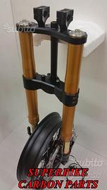 PER QUALSIAISI MOTO PROTOTIPIAMO E REALIZZIAMO AVANTRENI SPECIALI COMPLETI CON FORCELLE OHLINS, PIASTRE DI STERZO E PIEDINI RADIALI RICAVATI DAL PIENO.