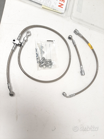 In pronta consegna. Bmw R 1100 R R850R dal 1993 al 2001 NO ABS kit tubi freno in treccia anteriori e posteriori. Acciaio guaina trasparente. 100025 Completi di viterie. Fren tubo, nuovo. Una eventuale spedizione costa 15euro. Il prezzo non e' trattabile. Grazie.