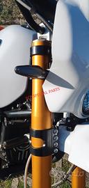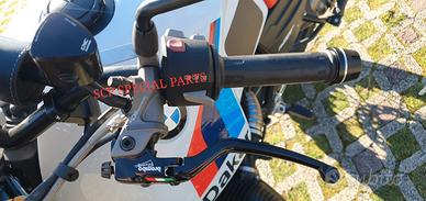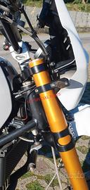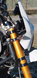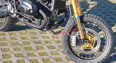 Progettiamo e Realizziamo allestimenti moto su misura completi di avantreni dotati di forcelle ohlins, impianti frenanti brembo radiali, monoammortizzatori ohlins, cerchi a raggi, cerchi forgiati, scarichi termignoni e akrapovic per: scrambler, streetfighter, superbike, cafe racer, custom, prototipi, show bike, maxi enduro, off road, maxi scooter, brat. ESCLUSIVITA', PERFORMANCE, SICUREZZA ED ESTETICA AL TOP! PRESENTIAMO IN ESCLUSIVA MONDIALE AVANTRENO COMPLETO SU MISURA PER BMW R NINE T SCRAMBLER E BMW R NINE T URBAN GS CON FORCELLE OHLINS PRESSURIZZATE ( su richiesta anche per qualsiasi altro modello). IL KIT MONTA PLUG AND PLAY SENZA MODIFICHE E' STATO SVILUPPATO PER PERMETTERE DI RIALZARE LA MOTO FINO A OLTRE 15CM CON UN AUMENTO NOTEVOLE DELLE ESCURSIONI A TUTTO BENEFICIO DEL USO FUORISTRADISTICO E DEL COMFORT. costituito da: - FORCELLE OHLINS PRESSURIZZATE RXF 48 a stelo rovesciato da 48mm, cartucce interne TTX pressurizzate, COMPLETAMENTE REGOLABILI, su misura anche per utilizzo offroad. - PIEDINI FORCELLE RADIALI RICAVATI DAL PIENO interasse 108mm - KIT PIASTRE DI STERZO RICAVATE DAL PIENO SU MISURA - ALLOGGI RISER MANUBRIO RICAVATI DAL PIENO - PINZE BREMBO RADIALI GP4RS (altri modelli disponibili) -DISCHI BREMBO 320mm (optional vari modelli) - SUPPORTI SENSORE RUOTA RICAVATI DAL PIENO -CERCHI A RAGGI - KIT INSTALLAZIONE CERCHIO RICAVATO DAL PIENO (disponibile anche per chi desidera mantenere cerchio originale) - POMPA FRENO BREMBO RCS CORSA CORTA (optional) - POMPA FRENO FRIZIONE RCS CORSA CORTA per conversione da olio minerale a dot4 (optional) - AMMORTIZZATORE POSTERIORE OHLINS PRESSURIZZATO DISPONIBILE ANCHE PROTOTIPATO SU MISURA (optional) Tutte le parti ricavate dal pieno e i foderi forcelle possono essere anodizzate di qualsiasi colore su richiesta. Piastre di sterzo sovradimensionate con piastra inferiore da 80 mm a 8 punti di chiusura, su richiesta con alleggerimenti passanti laterali. Pi