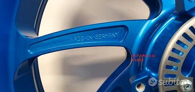 SET CERCHI PVM VERSIONE LIMITED EDITION WORLD SUPERBIKE 2024 Specifici per BMW S 1000 XR 2020 - 2024, su richiesta anche per altri anni BMW S 1000 RR 2019 - 2024, su richiesta anche per altri anni BMW M 1000 RR** tutti i modelli. BMW M 1000 R. Alluminio forgiato, nuovo modello 2023 2024, leggerissimi circa 7.5 kg la coppia (senza dischi e corona). COMPLETI DI LAVORAZIONE ANTISLIP SUL CANALE DEL CERCHIO. QUESTO TRATTAMENTO IMPEDISCE ALLA GOMMA DI "GIRARE SUL CERCHIO" EVITANDO COSI' PERICOLOSI ONDEGGIAMENTI E MIGLIORANDO IL FEELING IN USCITA DI CURVA NELLA FASE DI ACCELERAZIONE. I cerchi sono anodizzati IN QUALSIASI COLORE SU RICHIESTA e questo offre una durata nel tempo e una resistenza impossibile con la normale verniciatura. Completi di tutte le parti descritte: -coppia dischi superbike full flottanti 5,5mm rm2 made in italy -disco posteriore*** -ruote foniche -mozzo porta corona + corona alleggerita sitta -valvole a 90° Pronti per i montaggio plug and play. La coppia di dischi prodotta dalla italianissima RM2 è full flottante, campana in ergal alleggerito, anodizzato e pista frenante da 5,5mm di spessore, su richiesta anche da 6,00 mm acrux. Disponibili blu oppure neri I dischi sono full flottanti quindi garantiscono un perfetto accoppiamento con la pastiglia freno per una frenata immediata senza ritardi ed efficace. I dischi annullano il fastidioso fenomeno fading, ovvero quando all'aumentare delle temperature di esercizio la pompa freno diventa spugnosa e si "allunga" la corsa . La pista frenante racing con speciale lavorazione del profilo a cuspide offre una perfetta resa della pastiglia freno. IL SET CERCHI GARANTISCE L'OTTENIMENTO DI UNA MANEGGEVOLEZZA ELEVATISSIMA A TUTTO VANTAGGIO DI CAMBI DIREZIONE RAPIDISSIMI CON LA CON LA POSSIBILITA' DI RITARDARE AL MASSIMO LA STACCATA CON INGRESSI IN CURVA FULMINEI. I DISCHI GARANTISCONO UNA POTENZA FRENANTE NOTEVOLMENTE AUMENTATA A PARITA' DI PRESSI