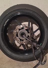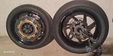 Cerchi Marchesini Genesi M7RS in alluminio forgiato per BMW S1000RR dal 2009 al 2018; completi di corona passo 520, ruote foniche, freno posteriore wave, freni anteriori Brembo racing supersport nuovi con relativo set pastiglie Brembo RC utilizzato per rodarli.