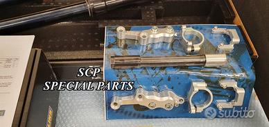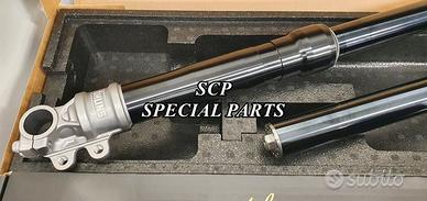 KIT SOSPENSIONI OHLINS COMPLETO SPECIFICO PER : BMW R NINE T SCRAMBLER BMW R NINE T URGAN GS (DISPONIBILE ANCHE PER BMW R NINE T RACER E PURE) KIT FORCELLE INSTALLABILE ANCHE SU VERSIONE RACER E PURE. KIT COSTITUITO DA: -AMMORTIZZATORE OHLINS PRESSURIZZATO CON PRECARICO IDRAULICO COMPLETAMENTE REGOLABILE -FORCELLE OHLINS A STELO TRADIZIONALE NERE (DISPONIBILI ANCHE ORO) COMPLETAMENTE REGOLABILI -KIT DI MONTAGGIO SPECIFICO RICAVATO DAL PIENO AMMORTIZZATORE 46 DRLB Pistone da 46 mm Pressurizzato in azoto con serbatoio Stelo da 16 mm Regolabile in estensione Interasse variabile 374mm + 10mm Precarico molla idraulico Consegnato con molla esclusivamente di colore nero DISPONIBILE ANCHE IN VERSIONE RIBASSATA DA 364MM OPPURE IN VERSIONE RIALZATA DA 390MM FORCELLA tradizionale OHLINS Steli da 43 mm trattati al tin Regolabile in compressione Ed estensione E precarico delle molle Kit Montaggio per Forcella Öhlins. Il kit per adattare la forcella Öhlins ai modelli RNineT Scrambler, GS, Pure e Racer