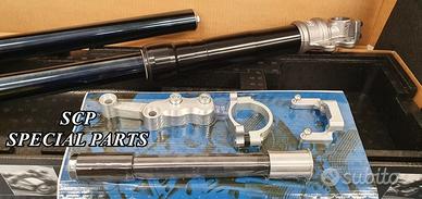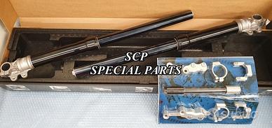 BMW R NINE T SCRAMBLER BMW R NINE T URGAN GS BMW R NINE T RACER BMW R NINE T PURE FORCELLA tradizionale OHLINS DISPONIBILE NERO OPPURE ORO Steli da 43 mm trattati al tin Regolabile in compressione Ed estensione E precarico delle molle Kit Montaggio per Forcella Öhlins. Il kit per adattare la forcella Öhlins ai modelli RNineT Scrambler, GS, Pure e Racer DISPONIBILE ANCHE KIT SOSPENSIONI OHLINS COMPLETO CON FORCELLE OHLINS E AMMORTIZZATORE. KIT FORCELLE INSTALLABILE ANCHE SU VERSIONE RACER E PURE. KIT COSTITUITO DA: -AMMORTIZZATORE OHLINS PRESSURIZZATO CON PRECARICO IDRAULICO COMPLETAMENTE REGOLABILE -FORCELLE OHLINS A STELO TRADIZIONALE NERE (DISPONIBILI ANCHE ORO) COMPLETAMENTE REGOLABILI -KIT DI MONTAGGIO SPECIFICO RICAVATO DAL PIENO AMMORTIZZATORE 46 DRLB Pistone da 46 mm Pressurizzato in azoto con serbatoio Stelo da 16 mm Regolabile in estensione Interasse variabile 374mm + 10mm Precarico molla idraulico Consegnato con molla esclusivamente di colore nero DISPONIBILE ANCHE IN VERSIONE RIBASSATA DA 364MM OPPURE IN VERSIONE RIALZATA DA 390MM
