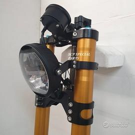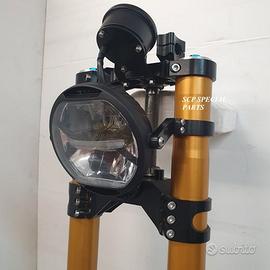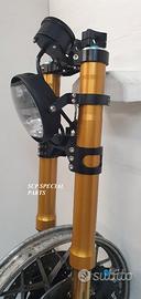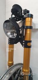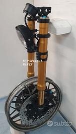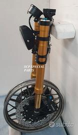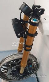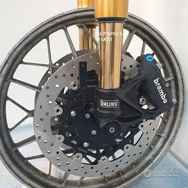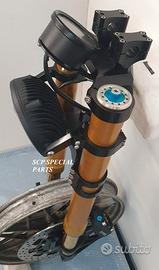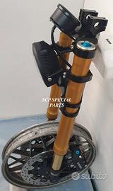 Progettiamo e Realizziamo allestimenti moto su misura con avantreni dotati di forcelle ohlins e freni brembo, monoammortizzatori ohlins, cerchi a raggi, per: cafe racer, scrambler, custom, streetfighter, superbike, prototipi, show bike, maxi enduro, off road, maxi scooter, brat. ESCLUSIVITA', PERFORMANCE, SICUREZZA ED ESTETICA AL TOP! PRESENTIAMO ALLESTIMENTO SU MISURA PER BMW SERIE R E SERIE K ( su richiesta anche per qualsiasi altro modello), costituito da: - FORCELLE OHLINS a stelo rovesciato allestite su misura in base al progetto, COMPLETAMENTE REGOLABILI, disponibili nel modello NIX con stelo da 48mm e fodero da 58mm, oppure nel modello OHLINS NIX SUPERBIKE con stelo da 43mm e fodero da 54mm a 58mm. - PIEDINI FORCELLE RADIALI, su richiesta anche ricavati cnc - KIT PIASTRE DI STERZO RICAVATE DAL PIENO SU MISURA - RISER MANUBRIO OPPURE COPPIA SEMIMANUBRI RICAVATI DAL PIENO - POMPA FRENO BREMBO (optional) - PINZE BREMBO RADIALI (vari mod. disp.) - DISCHI BREMBO MAGGIORATI da 320mm (vari mod. disp.) - STAFFE FARO, STAFFA CRUSCOTTO E STAFFE PARAFANGO RICAVATE DAL PIENO - FLANGE MOZZO PORTA DISCO RICAVATE DAL PIENO (per cerchio originale) - PARAFANGO CARBONIO - COPPIA CERCHI A RAGGI FLUOFORMATI CON MOZZI CNC PROTOTIPATI SU MISURA (OPTIONAL) - AMMORTIZZATORI / AMMORTIZZATORE POSTERIORE OHLINS PRESSURIZZATI PROTOTIPATI SU MISURA (OPTIONAL) IL KIT MONTA PLUG AND PLAY QUINDI SENZA MODIFICHE ANCHE CON IL CERCHIO ORIGINALE BMW. Tutte le parti ricavate dal pieno, i foderi forcelle e anche i cerchi possono essere anodizzate di qualsiasi colore su richiesta. Piastre di sterzo sovradimensionate con piastra inferiore da 80 mm a 6 punti di chiusura, su richiesta con alleggerimenti passanti laterali. Piastra di sterzo superiore completa di riser oppure semimanubri. Possiamo progettare e realizzare qualsiasi modifica su richiesta.