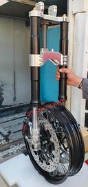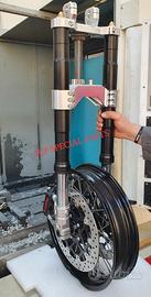 Progettiamo e Realizziamo allestimenti moto su misura con avantreni dotati di forcelle ohlins oppure derivanti da altre moto, freni brembo, monoammortizzatori ohlins, cerchi a raggi, per: cafe racer, scrambler, custom, streetfighter, superbike, prototipi, show bike, maxi enduro, off road, maxi scooter, brat.