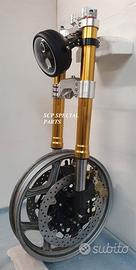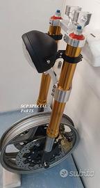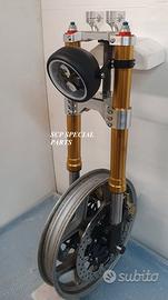- FORCELLE SHOWA assiali, su richiesta OHLINS radiali a stelo rovesciato allestite su misura in base al progetto, COMPLETAMENTE REGOLABILI, disponibili nel modello NIX con stelo da 48mm e fodero da 58mm, oppure nel modello OHLINS NIX SUPERBIKE con stelo da 43mm e fodero da 54mm a 58mm. Oppure forcelle MARZOCCHI RAC 50, assiali o radiali