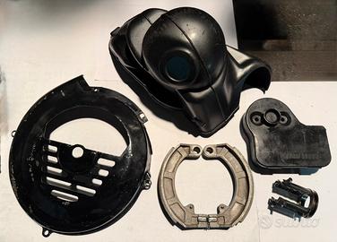 Vendo lotto di ricambi d'epoca per Vespa Smallframe, perfetto per restauratori: -CROCIERA CAMBIO INNESTO 4 MARCE ORIGINALE PIAGGIO VESPA 50 Special, R,L,N. Crociera da 50,2mm, adatta per tutti i motori post 1976 (sigla numerica sugli ingranaggi inizia con 4xxxxxx). -Scatola filtro originale Piaggio DGM 10967 S per carburatore originale Vespa 50 Special -Ganasce freno posteriore per cerchio da 10” Made in Italy NOS ricambio epoca con pochissimi km! -Piatto ganasce posteriore per cerchio da 10”, solo sbeccato ma utlizzabile e senza altri difetti! -Cuffia motore originale Piaggio logo quadro per motore standard V5A1M (buono stato come da foto) e relativa griglia ventola in lamiera! -Bobina Accensione Esterna EBF (Cod. 86509): Fondo di magazzino (NOS - New Old Stock), nuova, mai montata, nella sua scatola originale. -Contattiera motore completa per motori 50/125 -Collettore di scarico per marmitta Proma/Sito a siluro per motori corsa corta 50/75/102 cc, ottimo. Condizioni come da foto, tutto utilizzabile senza problemi! Ottimi per restauro !