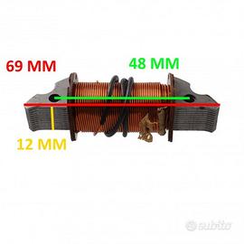 (R.14332) Vendo bobina illuminazione nuova per ciclomotori vari epoca con motore Minarelli V 1 con volano Cev 4 poli da 110 mm - Atala Rizzato Califfo - Super - Deluxecon codice CEAB LU 9/A con interasse fori 48 mm e lunghezza totale 69 mm con spessore nucleo 12 mm , per misure vedere foto