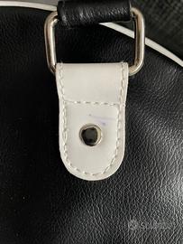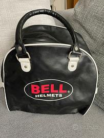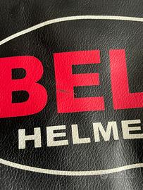 Vendo borsa porta casco BELL Helmets originale, stile vintage, in pelle (o similpelle) nera con dettagli bianchi a contrasto.