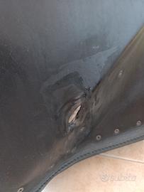 Borsa laterale Ends Cuoio, molto bella e capiente (circa 30/35 litri), vendo per modifiche estetiche. la borsa nasce per Dyna Street Bob 1584 e 1690, io la montavo su Wide Glide come si può vedere dalla foto. tenuta bene, solo un segno dietro in corrispondenza del perno ruota, la borsa però e rinforza nella parte posteriore con una lamiera, non si bucherà mai. resto a disposizione per info.