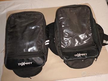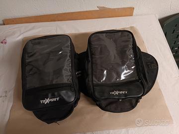 Borsa da moto,si applica sul serbatoio,è divisibile in due parti. Molto capiente e non da fastidio durante la guida. No perditempo Grazie