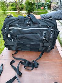 bella versatile e capiente borsa da moto posteriore, impermeabile e con anche copertura cerata, molteplici tasche e supporti, cinghie per fissaggio universali, in ottime condizioni.
