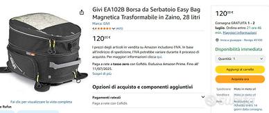Borsa della givi magnetica e cinghia d'avanti ,come nuova usata 2 volte, materiale di qualità con possibilità di estendere la borsa per aumentare la capacità, comoda da trasportare grazie alla maniglia.