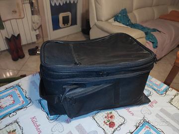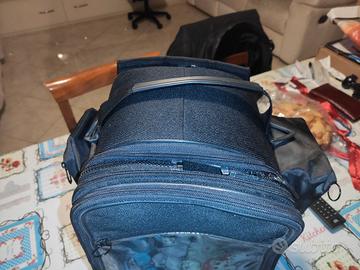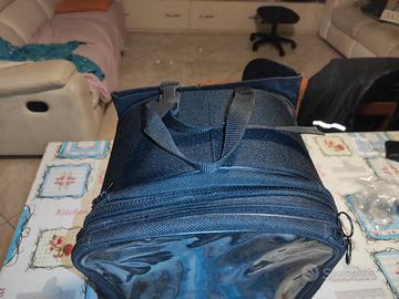 Capiente, comoda, con tracolla. la parte superiore si può sganciare con la comoda cerniera e diventa un borsello. Ampia finestra trasparente superiormente in cui si può alloggiare cellulari, tablet o cartine...