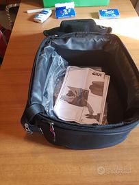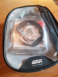 borsa da serbatoio per moto con tasche e protezione impermeabile e relativa flancia per fissarla al serbatoio