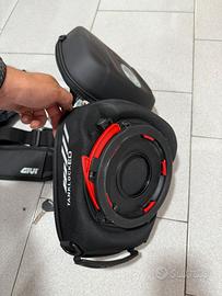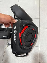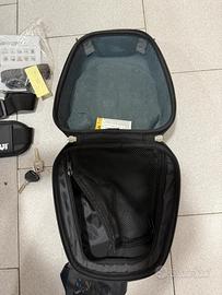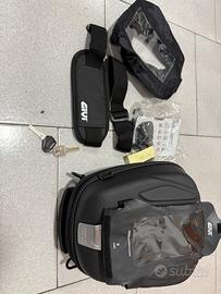 Vendo causa inutilizzo borsa da serbatoio Givi modello Tanklock ST605B con custodia antipioggia, porta cellulare impermeabile e tracolla. La borsa necessita di apposita flangia (da acquistare separatamente in base al modello di moto).