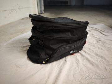 Borsa Tanklock per moto Enduro, 21 lt, estensibile fino a 27 lt. Da abbinare necessariamente alle flange specifiche BF_ _ (flangia specifica moto per moto non inclusa, acquistabile separatamente). Materiali: poliestere 600D e poliestere laminato PU, inserti in Pu e piping riflettente giallo fluo, materiale riflettente nero opaco. Tutti i materiali sono realizzati secondo la normativa REACH. Dotazioni: copertina antipioggia in materiale giallo fluorescente, porta cartina trasparente, tasca elastica frontale, 2 tasche laterali con cerniera, spallaccio per trasporto a tracolla, maniglia frontale per trasporto a mano