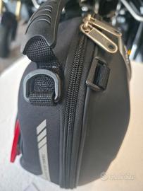 Borsa da serbatoio GIVI con tecnologia Tanklock. Grazie al sistema brevettato a scatto, la borsa si monta e si smonta in un secondo, rimanendo sospesa sopra il serbatoio senza graffiarlo.