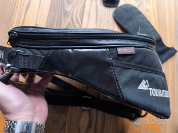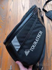 Vendo borsa da serbatoio della Touratech. Il tipo di impiego di questo modello grazie alla sua forma piatta e alla ridotta dotazione è estremamente ampio. La borsa ha una capienza di ca 6 lt. -Lavabile e facile da pulire -Impugnatura robusta ed ergonomica per un pratico trasporto - Fissaggio anteriore grazie a chiusura a scatto -Fissaggio posteriore stabile grazie un'ampia chiusura in velcro - Rapida rimozione dal veicolo e facile da gestire durante i rifornimenti -Tasca portamappe con grande apertura - Ho fatto mettere una cinghia per utilizzo come zaino sulla schiena o a tracolla se si preferisce - Ampia tasca interna e comparti interni Dimensioni: (Lungh x Largh x Alt) ca. 35 x 27 x 16 cm Capacità: 6 litri Colore: nero Ho cambiato la cerniera principale quindi ora non è più idrorepellente. In caso di pioggia meglio coprirla.
