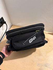 Vendo borsa da serbatoio Givi modello ea102b tenuta veramente bene come da foto. Si può agganciare al serbatoio sia con le fasce che con le calamite che ha in dotazione (no tanklock), può essere trasformata a zaino tramite apposite tracolle fornite ed è espandibile fino a 28 litri. Inoltre ha un pratico strato superiore trasparente dove poter mettere telefono/tablet per la navigazione.