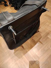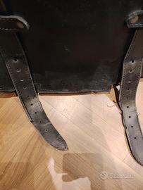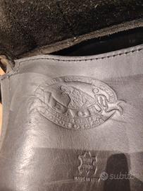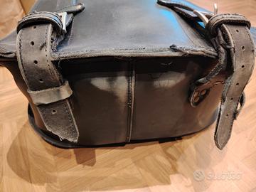 vendo borsa laterale Pach marchio che realizza borse in vero cuoio, montava su Dyna street bob con il telaietto in foto, adattabile a modelli dyna ma utilizzabile per ogni modello, dimensioni h40x l50x p 25,presenta segni di usura nella parte bassa per il resto il cuoio è mantenuto bene necessita solo pulizia nella parte interna.