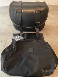Per vendita moto vendo ,borsa / bisacca moto in pelle espandibile marca The Bison con sgancio rapido per Harley Davidson Fat Bob dal 2017 in poi . A corredo anche borsa interna The Bison per trasporto a mano bagaglio .