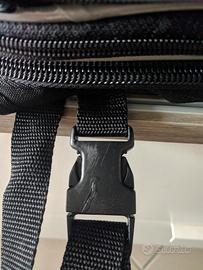Bellissima borsa per moto con attacchi magnetici per il serbatoio. La tasca principale è espandibile per aumentare la capacità di carico. Inoltre, presenta un piccolo vano superiore perfetto per il portafoglio. La borsa dispone anche di due tasche laterali, una cover superiore rimovibile per una mappa cartacea e una borsa impermeabile per proteggere dagli agenti atmosferici. È praticamente nuova, utilizzata solo 5 volte al massimo. L'unica piccola imperfezione è mostrata nell'ultima foto, ma non compromette la tenuta della chiusura.